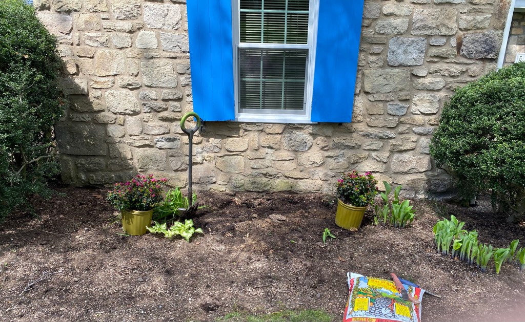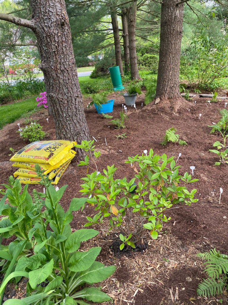 Happy client in Lafayette Hill where I planted beautiful annuals in pots, perennials and annuals in the landscape, and adding a climbing rose and clematis on a trellis in their side yard.DesignPlantingLightingBefore, have added color all along the front of the house, made a summer perennial garden next to the driveway and a shade garden in the back. Also putting together shade tolerant planters once it’s warm enough in two weeks for this lovely customer and Glenside.After, First week. Looking forward to posting pictures a year from now.Woodland shade garden in progress, removed ivy and weeds, added trillium, bluebells, foam flowers, ferns, astilbe, brunnera, rhododendrons, lupine, foxglove, forget me nots,…