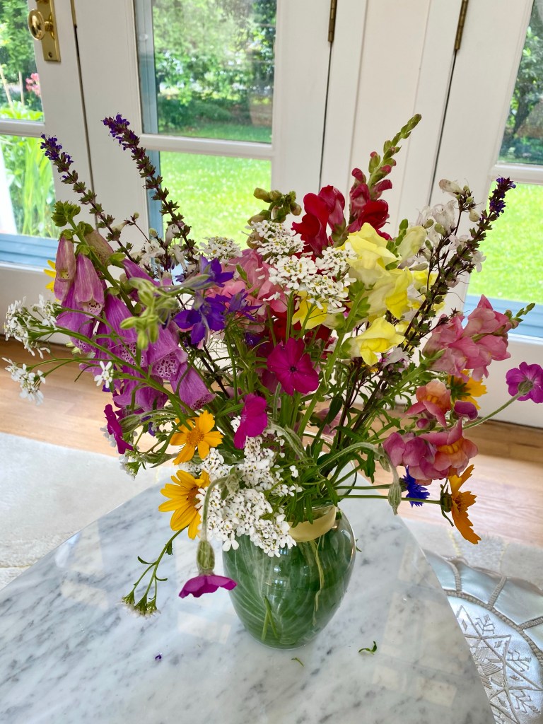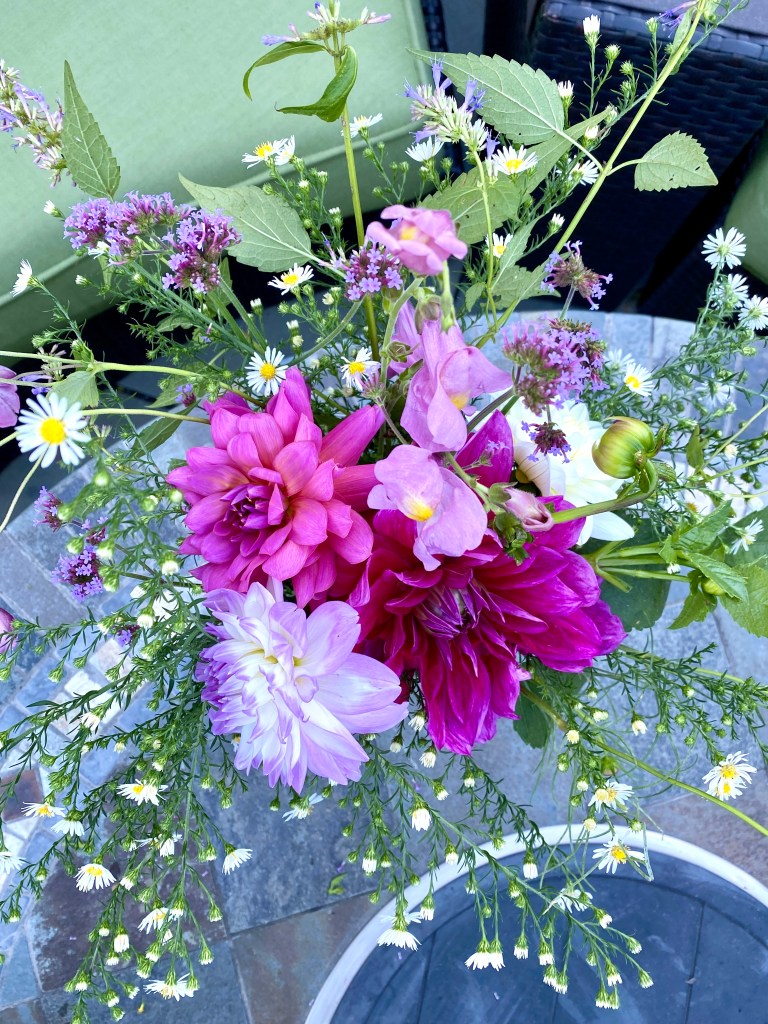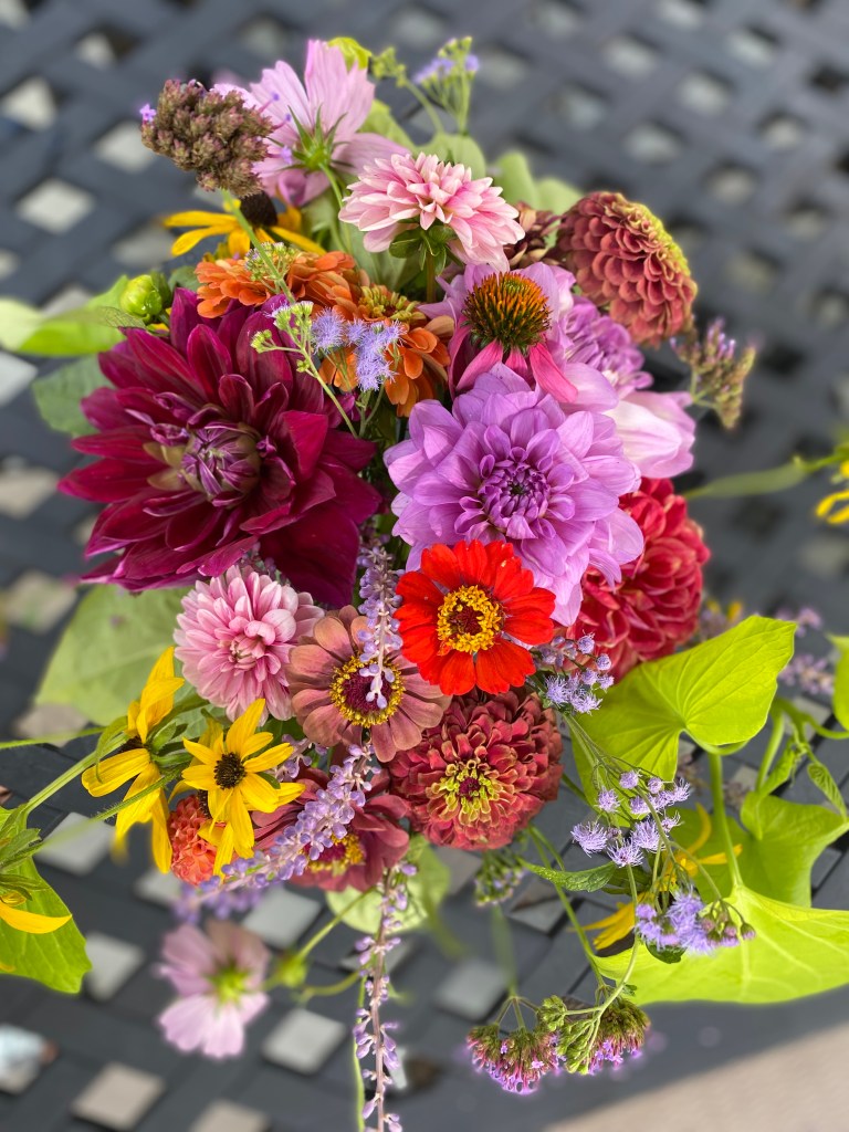 I grow an amazing variety of perennial and annual flowers that bloom at different times, which means no two weeks are the same. Would you like to pick up custom bouquets of what is blooming locally every week or every two weeks arranged in a vase suited perfectly to the flowers. 4 arrangements for $100. Set a day and time window for a weekly or every other week pick up. You can continue after the initial 4 at the ad hoc at the discounted rate. Return the vase when you next pick up (no worries about the cleanliness, I will take care of that), or drop off one of your favorite vases you would like me to use. Pick up two at once and give one to a friend (plus $5 if a vase is not returned). You will set the day and time window for the pick up it could be the morning or after work and they’ll be on my front porch. If you go on vacation or if I’m on vacation, we will just adjust the schedule. Anytime from April through the beginning of November. Pause or adjust dates based on your schedule. Flowers cut fresh from my garden, and treated with floral preserve to maximize freshness. My flowers are combinations of amazing perennials (peonies, fragrant roses, …) and stellar annuals like dahlias (July through November) that a florist would charge a premium for. They are cut from my garden the day of your pickup, maximizing vase longevity. When you purchase “grown not flown” flowers, that helps the environment with no jet fuel used to ship, no packaging, and creates an earth friendly pollinator haven.